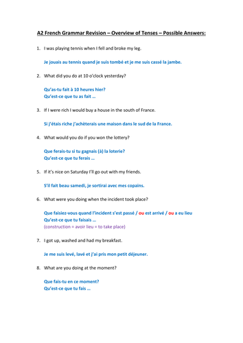 French Adv Translation Practice With Answers Teaching Resources