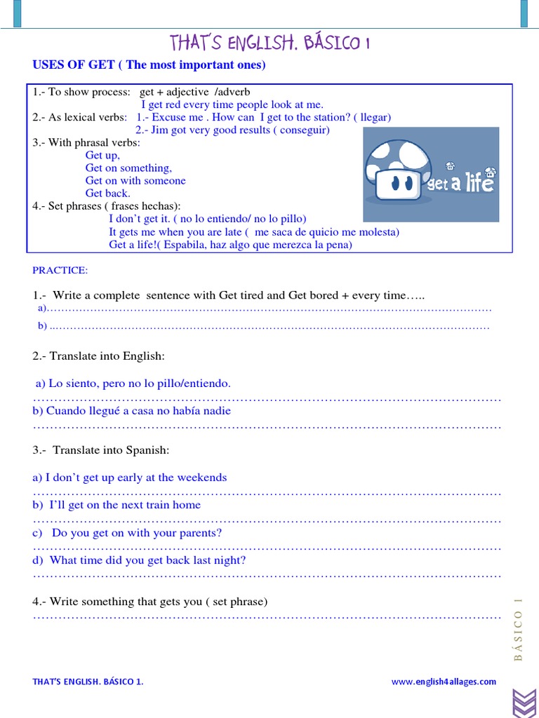 Uses Of Get With Exercises Pdf Semiotics Syntactic Relationships